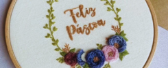 Nesse formato, você pode combinar ponto corrente, ponto haste e ponto cheio em um único desenho. Assim sendo, o bastidor se transforma em peça decorativa e também em excelente exercício prático.